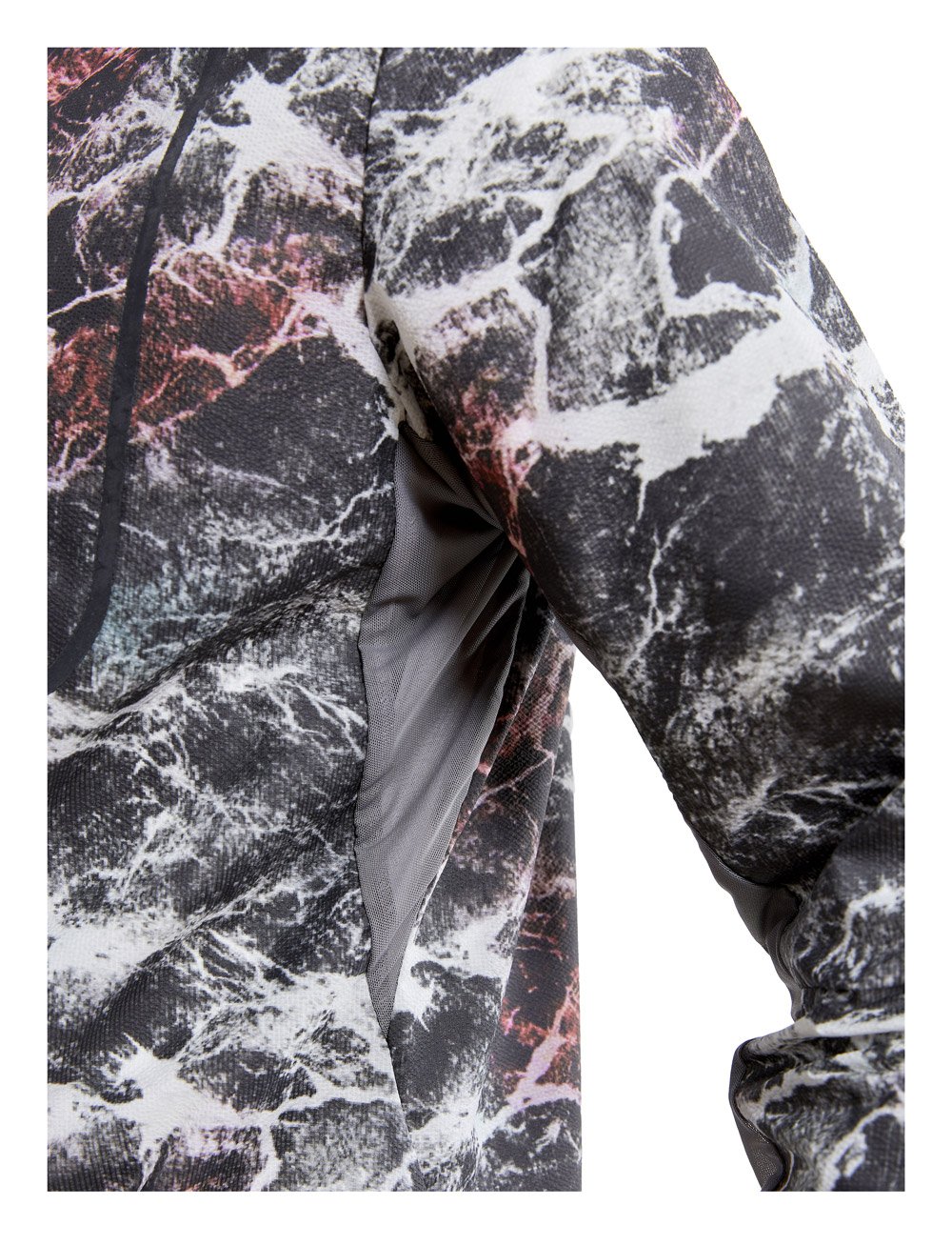 Для хорошей воздухопроницаемости предусмотрена зональная вентиляция по бокам и на спине. Вставки из сетчатой ткани Nanoweight отводят излишнее тепло и влагу. Также имеются вентиляционные отверстия в верхней части плеча. На груди располагается скрытый карман для хранения мелочей. Рукава и низ куртки собраны на эластичную ленту и защищают от ветра.