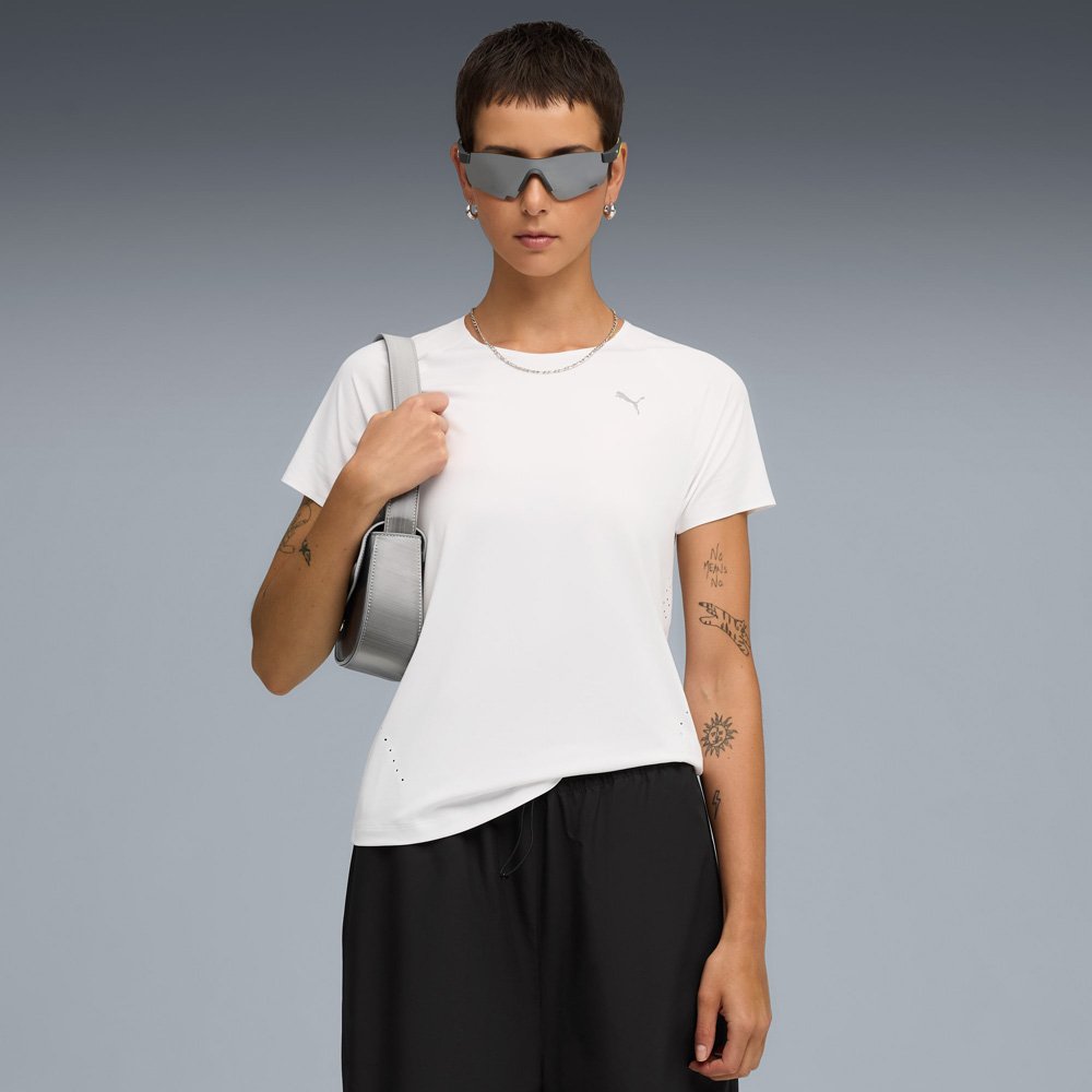 Женская футболка для повседневных тренировок и активного образа жизни. Она изготовлена из ультрамягкой ткани Cloudspun с 4-сторонней растяжимостью, что обеспечивает полную свободу движений и ощущение мягкости и комфорта.