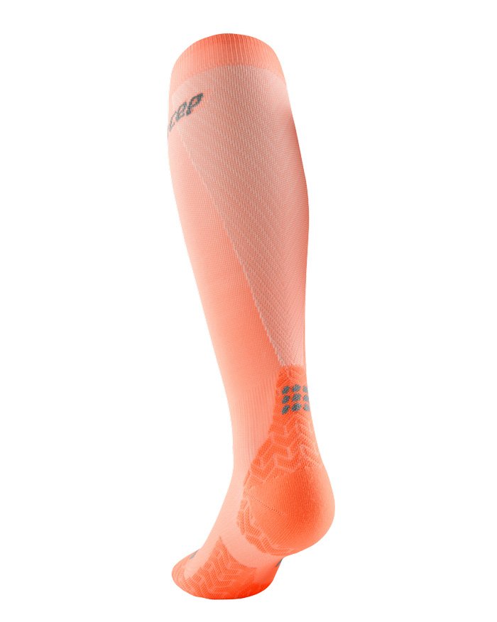 Ультратонкие гольфы CEP подходят для интенсивных тренировок. Градуированная спортивная компрессия способствует улучшению тонуса мышц и ускорению кровообращения. Применение технологии Smart Carbon позволило сделать эту модель на 30% легче базовой. Гольфы точно повторяют форму ноги и создают уверенное сцепление с обувью. Внедрение карбона в структуру нити обеспечивает охлаждающий эффект, что особенно важно при интенсивных тренировках.