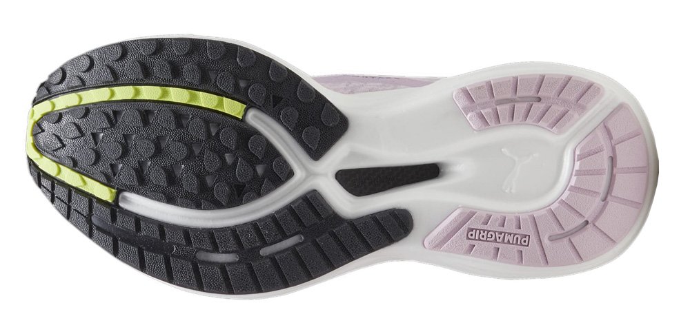 Подошва выполнена из более прочной, чем в предыдущей версии, резиновой смеси PumaGrip ATR и оборудована протектором с универсальным рисунком, подходящим как для твердых покрытий, так и для суровых условий и бездорожья.