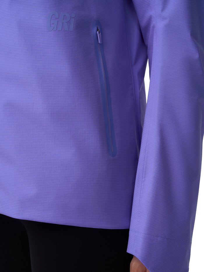 Куртка оснащена водонепроницаемыми молниями и клееными швами, которые исключают промокание даже в сложных погодных условиях. Продуманная конструкция включает боковые карманы, регулируемый нижний край и капюшон с настройкой по бокам и на затылке, что позволяет адаптировать посадку под любые условия и сохранять комфорт во время движения. Светоотражающие элементы спереди и сзади делают тренировки безопаснее в тёмное время суток.
