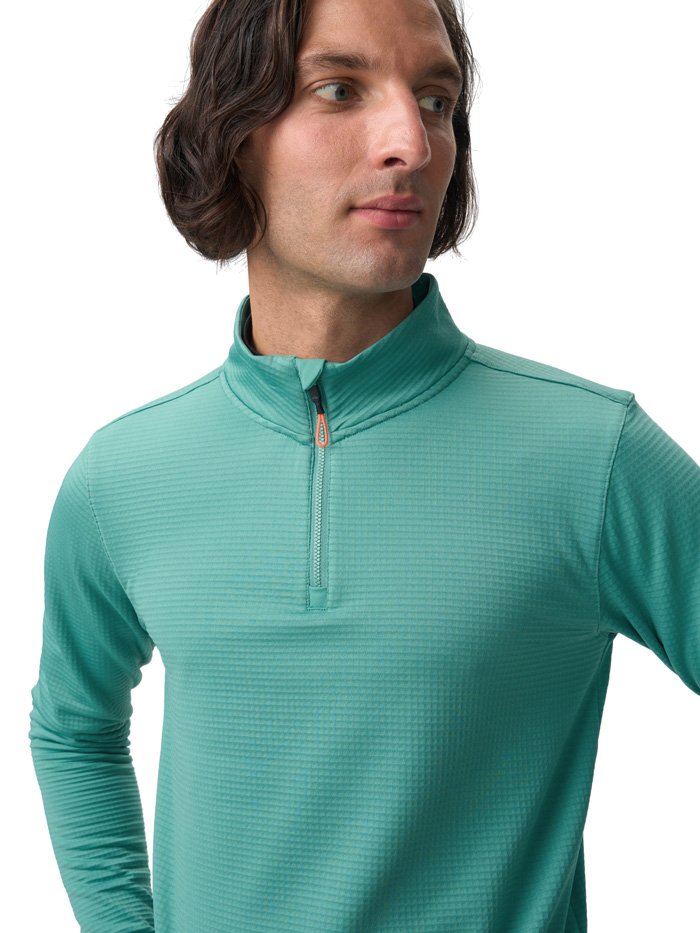 Базовая кофта с высоким воротом на молнии. В зависимости от погоды ее можно носить как самостоятельный слой, надевать под куртку или жилет. Подойдет для зимних пробежек при температуре от –5 до –15°С. Лонгслив сшит из дышащей "вафельной" ткани с влагоотводящей пропиткой QuickDry®. Имеется потайной боковой карман.