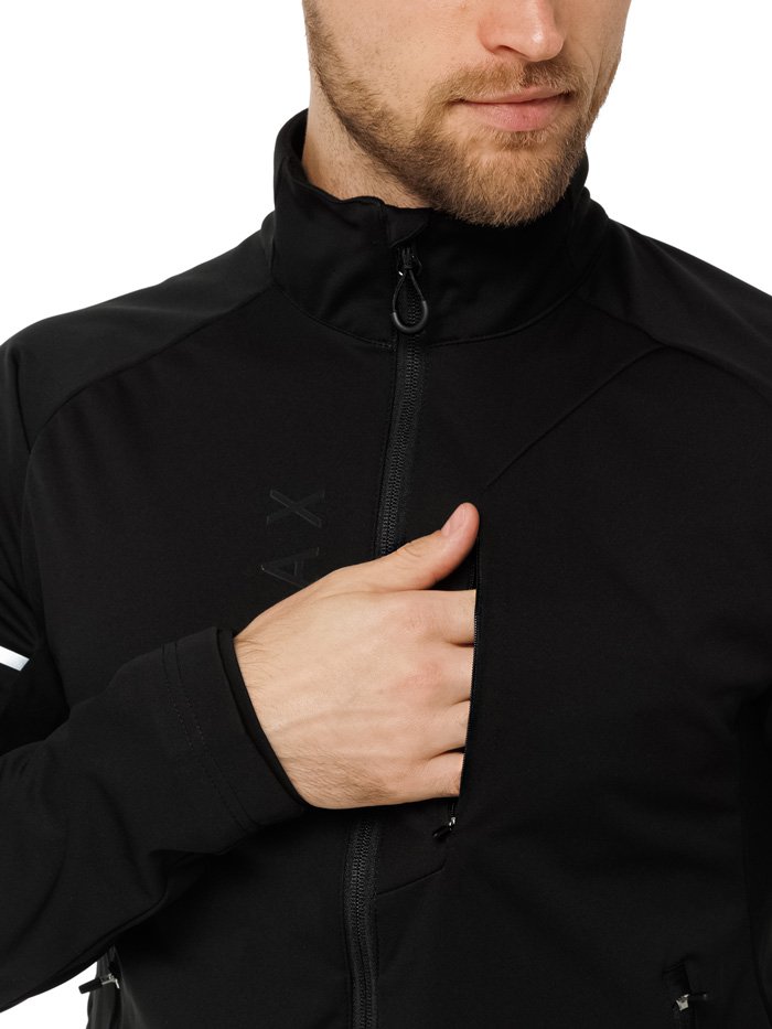 Передняя часть выполнена из трехслойного софтшелла с мембраной, которая эффективно защищает от ветра и холода, обеспечивая при этом отличную терморегуляцию и отвод влаги. Эргономичный спортивный крой гарантирует удобную посадку и не ограничивает движений даже при высокой активности.