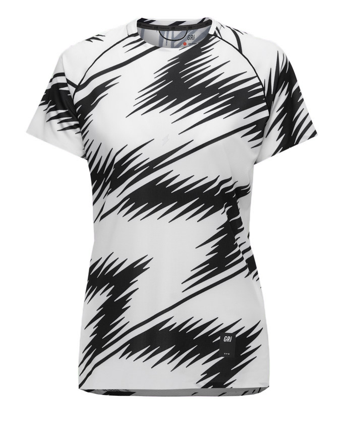 Григорий Лазарев, основатель бренда GRI: "Футболка Про сшита из двух материалов: нашей классической ткани GRI и облегчённой сетки. В этом году мы сделали нанесение в виде молнии на груди, чтобы отразить идею быстрого бега. Принты получились заметными, на соревнованиях будут выглядеть просто супер! Мне нравится и черно-белый, и огненный".