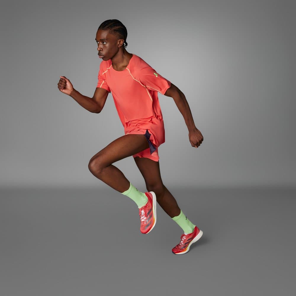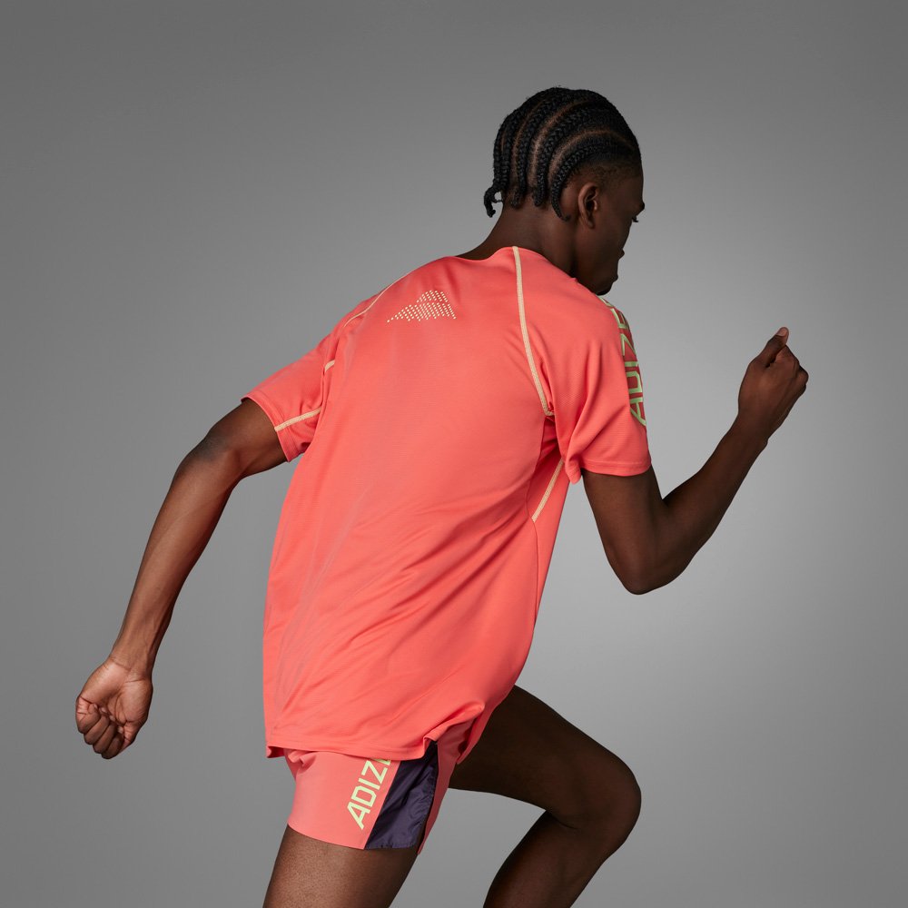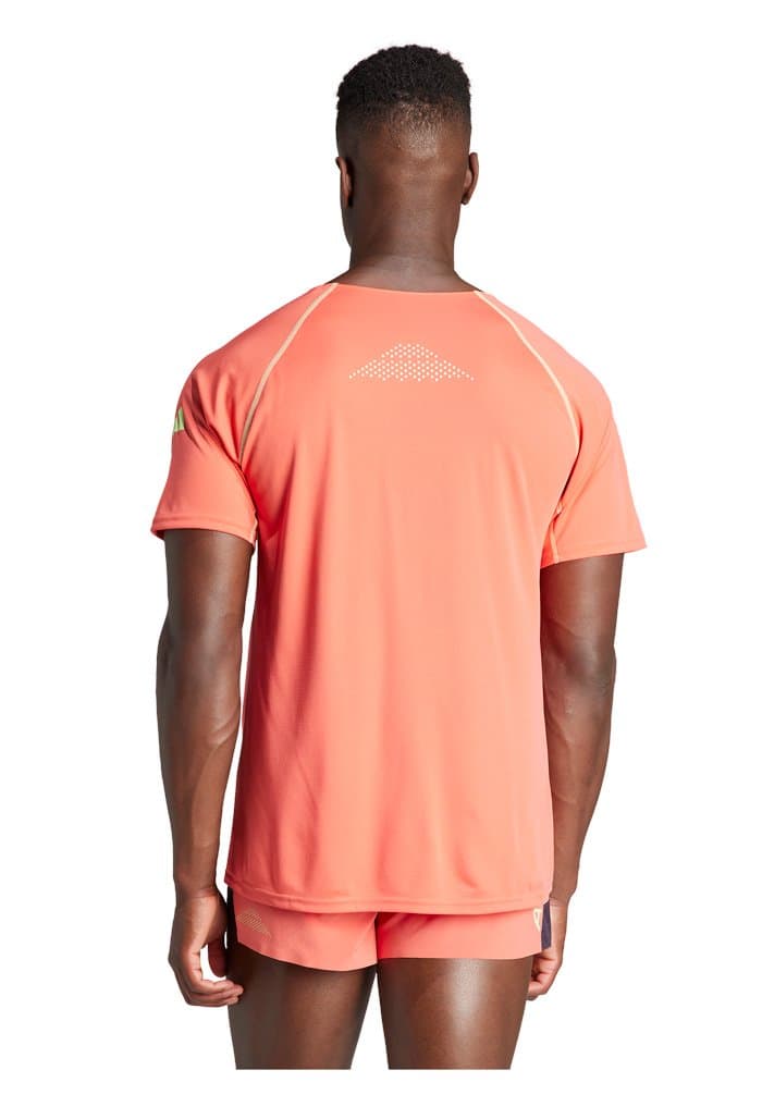 Футболка из лимитированной серии Ekiden разработанной для интенсивных и долгих тренировок в разных условиях. Специальный вырез в области талии не сковывает движения, а материал Aeroready быстро отводит влагу и приятно ощущается на теле. Светоотражающие элементы гарантируют безопасность на тренировках в темное время суток.