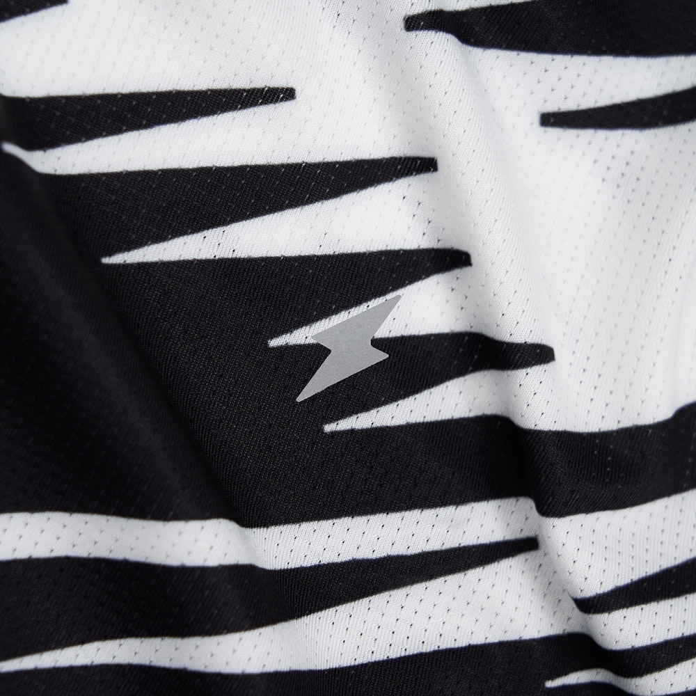 Григорий Лазарев, основатель бренда GRI: "Футболка Про сшита из двух материалов: нашей классической ткани GRI и облегчённой сетки. В этом году мы сделали нанесение в виде молнии на груди, чтобы отразить идею быстрого бега. Принты получились заметными, на соревнованиях будут выглядеть просто супер! Мне нравится и черно-белый, и огненный".