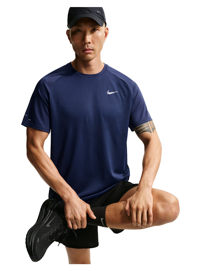 Технология Dri-FIT ADV сочетает инновационные влагоотводящие материалы с перфорированными вставками для поддержания сухости и комфорта. Анатомический крой с удобным рукавом реглан способствует естественной посадке и полному диапазону движений. Светоотражающие элементы улучшают видимость в условиях недостаточного освещения.