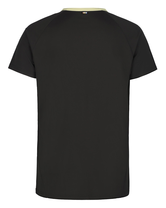 Футболка со стандартным кроем обеспечивает удобную посадку и подходит для любых видов активности. Эластичный материал, растягивающийся в четырех направлениях, дарит максимальную свободу движений, позволяя двигаться естественно и легко. Благодаря отсутствию раздражающих боковых швов футболка комфортно прилегает к телу и не натирает. Ткань эффективно отводит влагу и быстро ее испаряет, сохраняя сухость и ощущение свежести. Защита достигается за счет технологии плетения, без применения химических веществ.