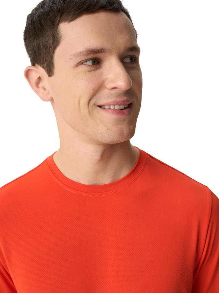 Модель сшита из легкой, дышащей, быстросохнущей ткани с пропиткой QuickDry®. Она обеспечивает эффективное отведение влаги и быстрое высыхание, сохраняя комфорт даже при интенсивных нагрузках в теплую погоду. Втачной рукав дает свободу движений и анатомическую посадку, не сковывая плечевой пояс во время бега или функциональных тренировок.