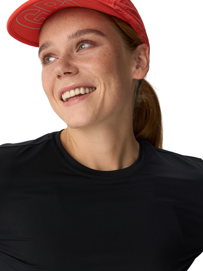 Модель сшита из легкой, дышащей, быстросохнущей ткани с пропиткой QuickDry®. Она обеспечивает эффективное отведение влаги и быстрое высыхание, сохраняя комфорт даже при интенсивных нагрузках в теплую погоду. Втачной рукав дает свободу движений и анатомическую посадку, не сковывая плечевой пояс во время бега или функциональных тренировок.