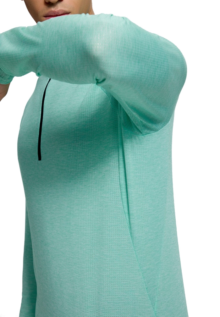 Изделие выполнено из высокотехнологичного материала, который растягивается в четырех направлениях, обеспечивая максимальную свободу движений во время прогулок, тренировок или активного отдыха. Ткань эффективно отводит влагу и гарантирует быстрое испарение, сохраняя сухость и комфорт даже при высоких физических нагрузках. Молния до середины груди позволяет регулировать вентиляцию во время активности.