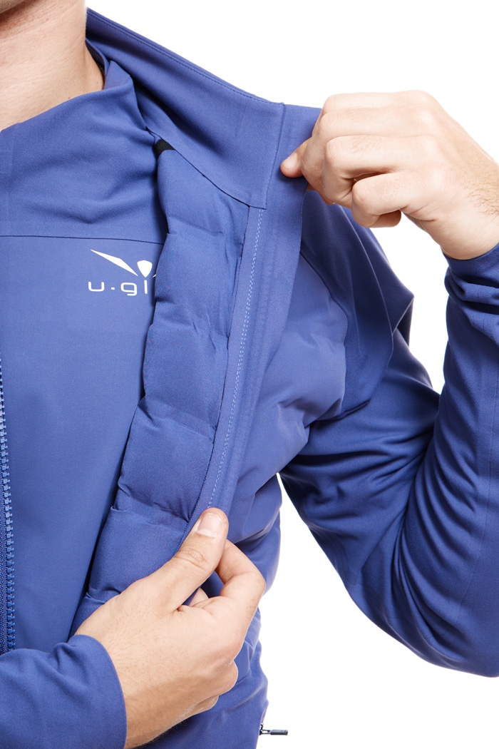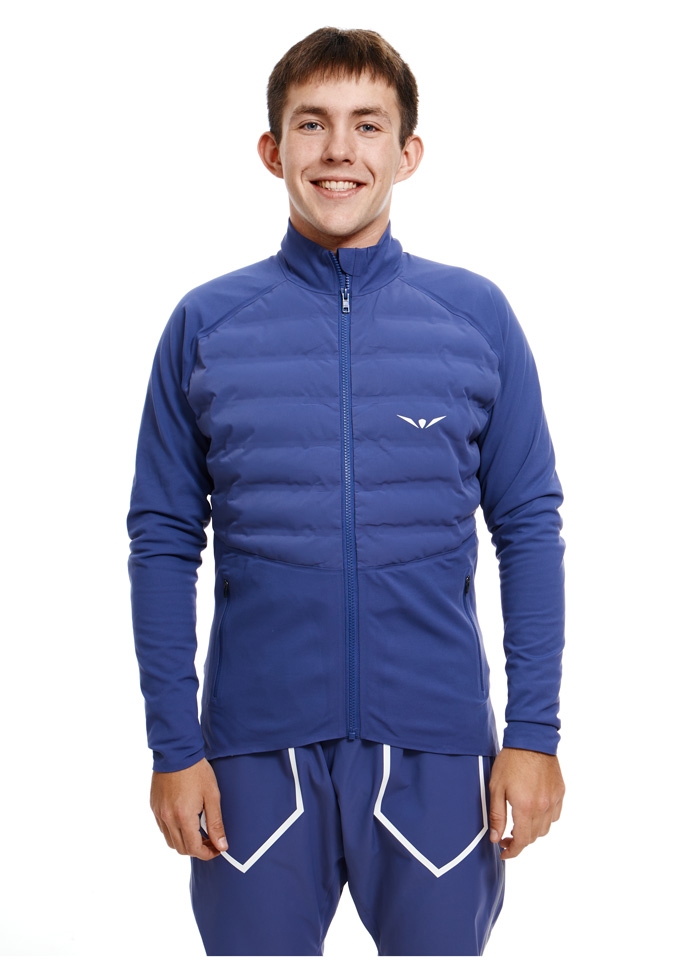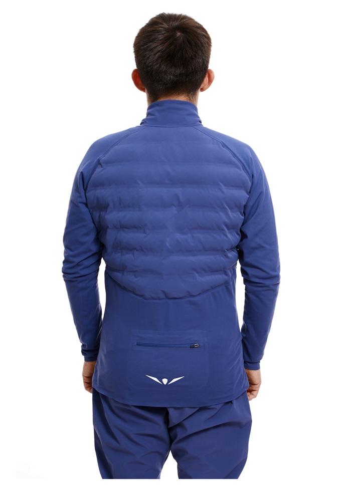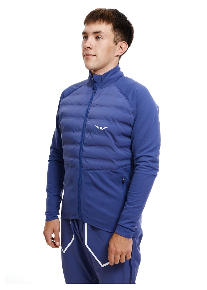 Мужская кофта для тренировок средней и высокой интенсивности в прохладную погоду. Модель выполнена из мягкого материала с пуховыми вставками в зоне груди и спины для дополнительного утепления и ветрозащиты.