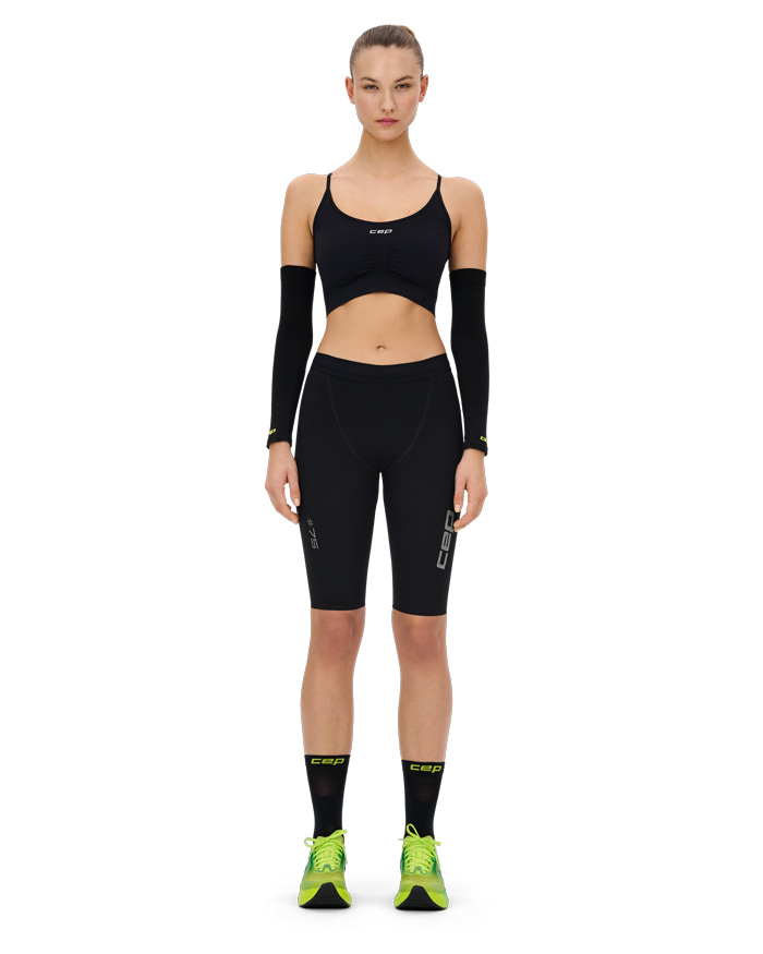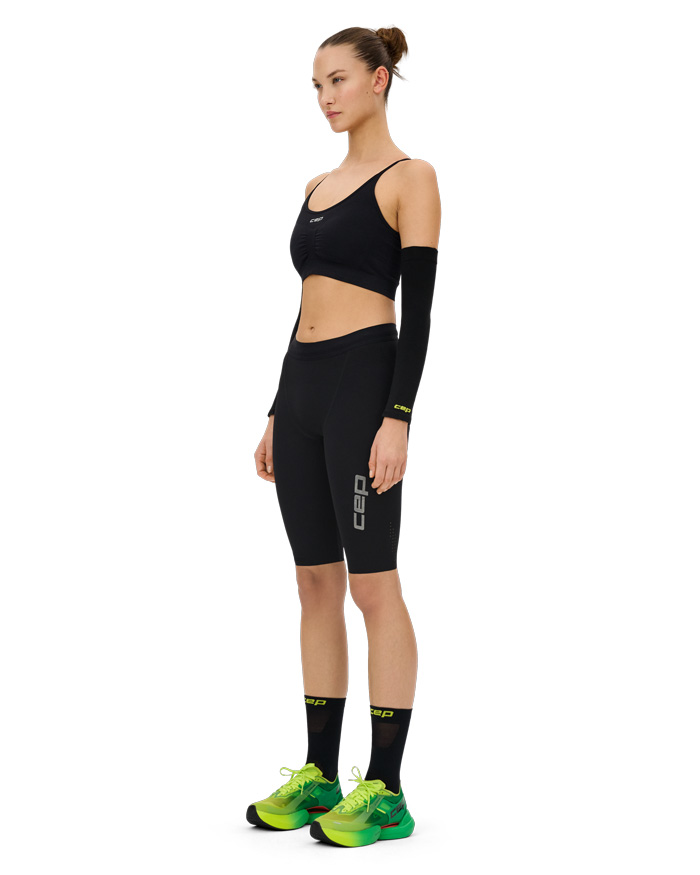 Плотная, но комфортная фиксация предотвращает скольжение и натирание. Улучшенная проприоцепция стабилизирует суставы и мышцы, повышая точность движений и снижая риск травм. Дополнительным преимуществом является устойчивая к ультрафиолету отделка ткани, которая надежно защищает кожу от вредного солнечного излучения. Независимо от уровня компрессии изделия Cep соответствуют строгим медицинским стандартам.
