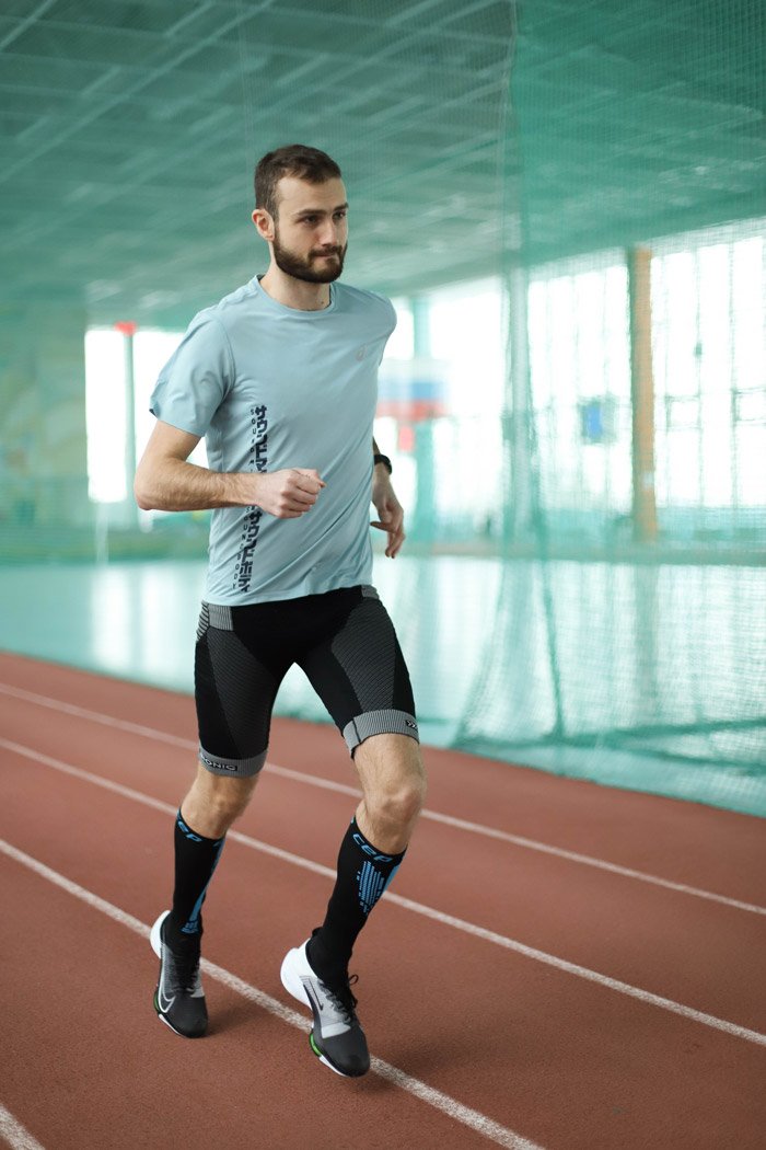 Мужские компрессионные спринтеры для бега и тренинга. Ткань с мягким компрессионным эффектом Partialkompression ® улучшает снабжение мышц кислородом и питательными веществами, обеспечивая, таким образом, быстрое восстановление.