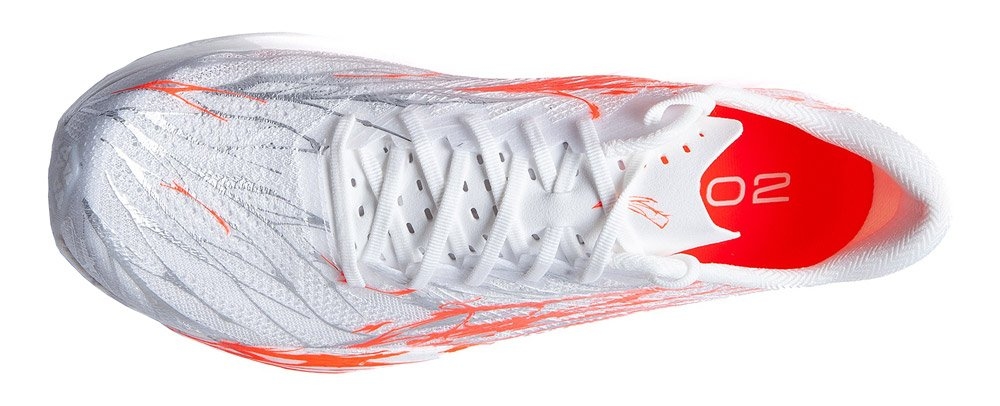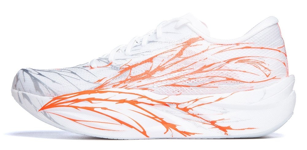 Верх выполнен из дышащего сетчатого материала A-WEB с вентиляционными зонами, обеспечивающими отличную циркуляцию воздуха, а прочная нить XIAN придает конструкции дополнительную износостойкость и надежно фиксирует стопу. Карбоновая пластина с точно рассчитанным расположением, жесткостью и формой, создает эффект качания, помогая при отталкивании и увеличивая каденс на 6%, что способствует развитию более высокой скорости и улучшению динамики бега. Промежуточная подошва NITROEDGE обеспечивает высокий коэффициент возврата энергии - до 84%, улучшает амортизацию и отзывчивость на любых поверхностях – асфальте, манеже или стадионе. Внешняя подошва оснащена резиновым протектором LIQUID ANTI-SKID, обеспечивающим на 13% лучшее сцепление на влажной поверхности и на 50% большую износостойкость по сравнению с обычной резиной. Узор протектора, созданный с помощью искусственного интеллекта, помогает минимизировать вес модели и повысить стабильность.