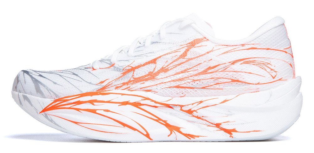 Верх выполнен из дышащего сетчатого материала A-WEB с вентиляционными зонами, обеспечивающими отличную циркуляцию воздуха, а прочная нить XIAN придает конструкции дополнительную износостойкость и надежно фиксирует стопу. Карбоновая пластина с точно рассчитанным расположением, жесткостью и формой, создает эффект качания, помогая при отталкивании и увеличивая каденс на 6%, что способствует развитию более высокой скорости и улучшению динамики бега. Промежуточная подошва NITROEDGE обеспечивает высокий коэффициент возврата энергии - до 84%, улучшает амортизацию и отзывчивость на любых поверхностях – асфальте, манеже или стадионе. Внешня
