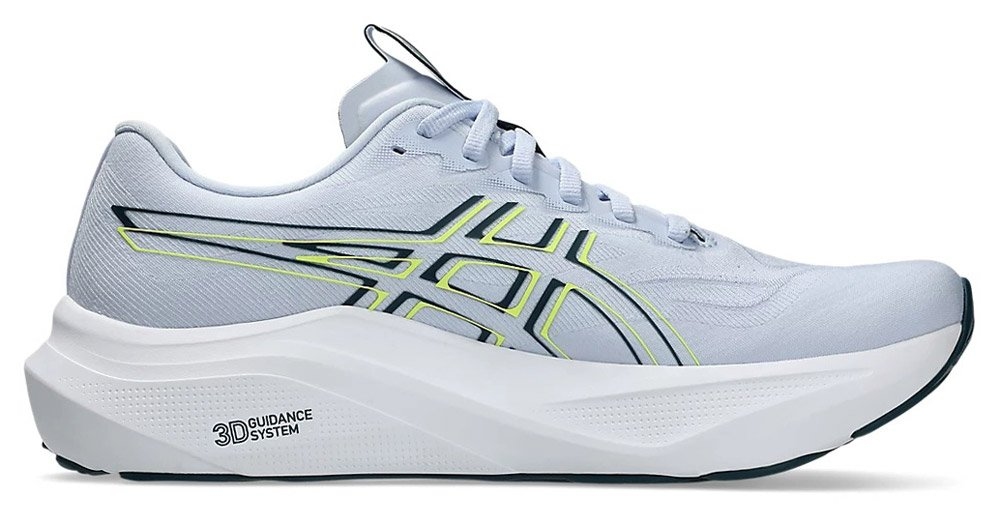 Технология поддержки 3D GUIDANCE SYSTEM™ помогает сохранить естественное движение стопы и повышает стабильность во время приземления. В промежуточной подошве располагается легкий и отзывчивый пеноматериал FF BLAST™ MAX. Он эффективно гасит удары и обеспечивает мягкое, пружинящее приземление. Технология PureGEL™ в области пятки снижает ударную нагрузку на стопу. Прочная резина AHAR®+ в зонах повышенного износа продлевает срок службы кроссовок и гарантирует отличное сцепление с поверхностью.