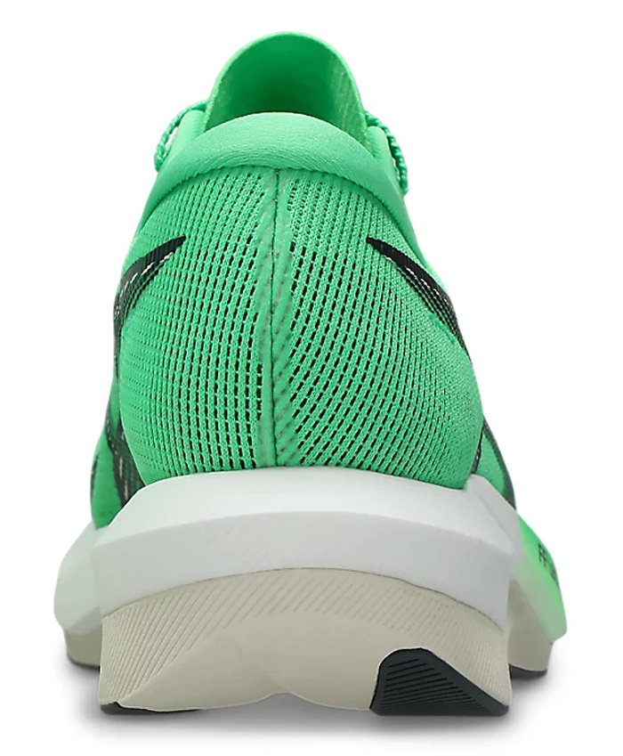 Карбоновая пластина, проходящая по всей длине подошвы, направляет стопу и продвигает ее вперед, помогая экономить энергию и поддерживать стабильный темп. По сравнению с предыдущей версией уменьшен перепад высоты до 7 миллиметров, а общая высота подошвы снижена на 6 миллиметров в пятке и на 5 миллиметров в передней части стопы. Вместе с переработанной карбоновой пластиной это дает более отзывчивое поведение обуви и лучший контроль над движением. Резиновая подошва AsicsGrip обеспечивает превосходное сцепление с различными типами покрытий — от асфальта до легко пересеченной местности.