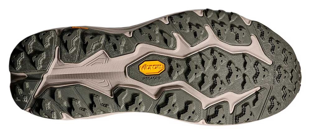Мягкая межподошва из материала CMEVA дарит упругую амортизацию и плавный перекат. Прорезиненная подошва Vibram® Megagrip с технологией Traction Lug и специальными микрозубцами гарантирует надежное сцепление и контроль даже на скользких или каменистых поверхностях. Технология Active Foot Frame поддерживает стопу и помогает сохранять устойчивость на неровном рельефе.