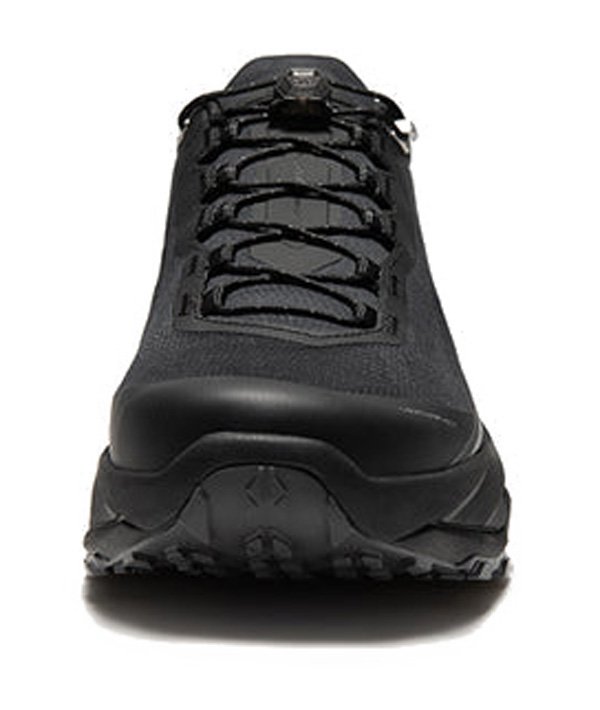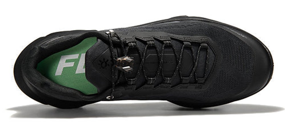 Верх выполнен из прочной эластичной сетки, которая обеспечивает плотную посадку и воздухообмен. Область вокруг пятки и боковые части кроссовка усилены прочными накладками из TPU, а мысок защищен от ударов о камни.