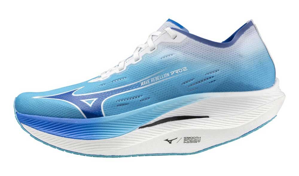 Подошва по-прежнему состоит из двух слоев амортизирующей пены: верхняя промежуточная подошва Mizuno Enerzy Lite+ обеспечивает мягкость и отзывчивость, а нижняя Mizuno Enerzy Lite - сохраняет ощущение легкости и скорости. Между двумя слоями пены размещена волнообразная карбоновая пластина для повышения упругости и силы отскока во время отталкивания. Несмотря на то, что в Rebellion Pro 2 ощущается более сильное покачивание, чем в предыдущей версии, на самом деле перепад от пятки к носку у них меньший (1,5 миллиметра против 4).