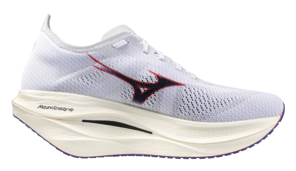 Карбоновая пластина Mizuno Wave с особым изгибом создает мощное отталкивание, помогая бежать быстрее с меньшими усилиями. Легкий и упругий материал Mizuno Enerzy XP в нижней части подошвы обеспечивает отличную амортизацию и возврат энергии, что важно для комфорта на марафонских дистанциях. Скошенная передняя часть подошвы (Radical Rocker Geometry) улучшает движение стопы, способствуя быстрому перекату и более эффективному бегу.
