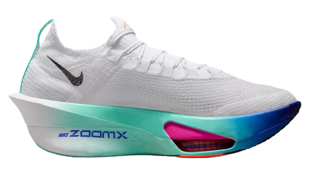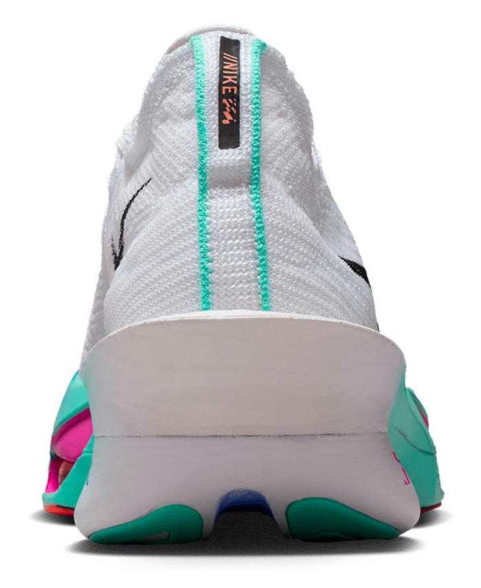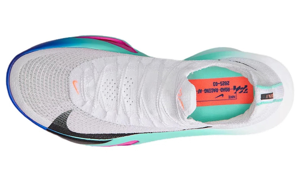 Третье поколение Alphafly стало легче предшественников, а углеродная пластина получила увеличенную ширину. Верх выполнен из инновационного материала AtomKnit - лёгкого, эластичного и воздухопроницаемого, который точно облегает стопу, обеспечивая надёжную фиксацию и хорошую вентиляцию. Встроенный вязаный язычок с мягкой подкладкой равномерно распределяет давление шнуровки, повышая комфорт.