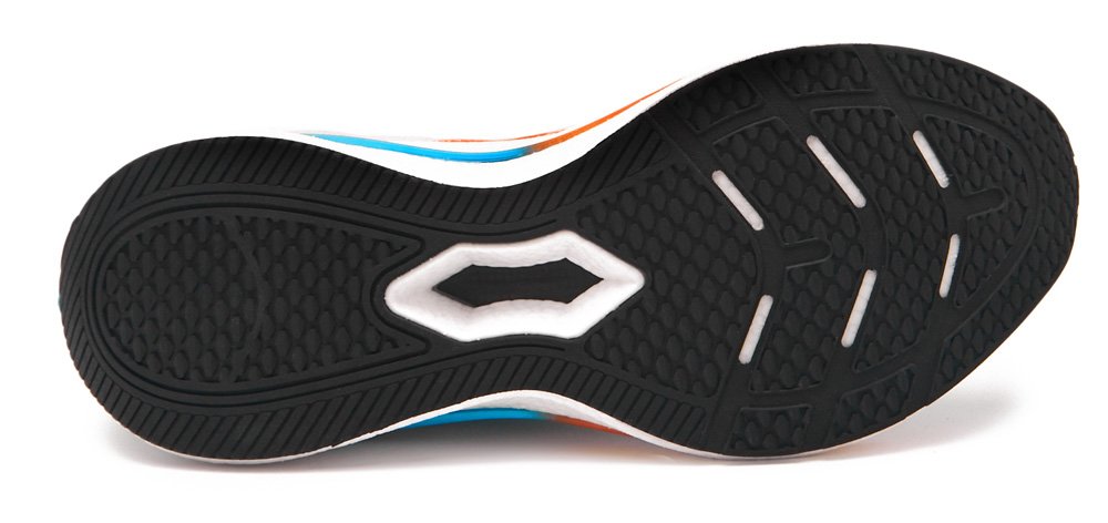 В подошве используется вспененный термопластичный полиуретан ETPU с добавлением высокоуглеродистой резины. Такое сочетание обеспечивает высокий возврат энергии и продлевает срок службы обуви.