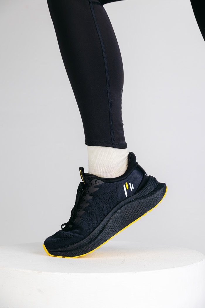 Подошва кроссовок изготовлена из термопластического полиуретана ETPU с добавлением высокоуглеродистой резины, что обеспечивает отличную амортизацию и возврат энергии. Подошва из углеродной резины гарантирует надежное сцепление и защиту на жестком асфальтовом покрытии.