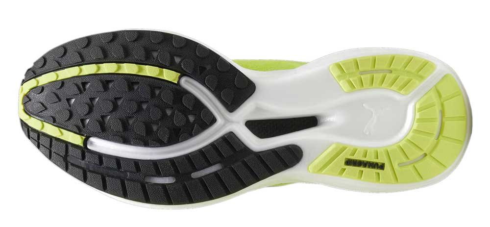 Подошва выполнена из более прочной, чем в предыдущей версии, резиновой смеси PumaGrip ATR и оборудована протектором с универсальным рисунком, подходящим как для твердых покрытий, так и для суровых условий и бездорожья.