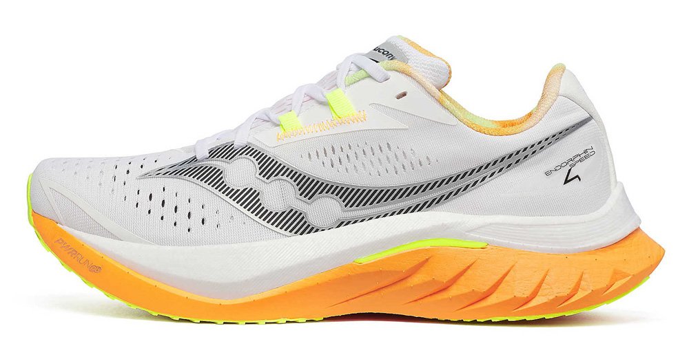 Главной особенностью Endorphin Speed 4 является улучшенная амортизационная система PWRRUN PB, которая обеспечивает легкость, отзывчивость и возврат энергии при каждом шаге. Эта инновационная пена способствует мощному отталкиванию и снижению усталости, что позволяет поддерживать высокую скорость на протяжении всей дистанции.