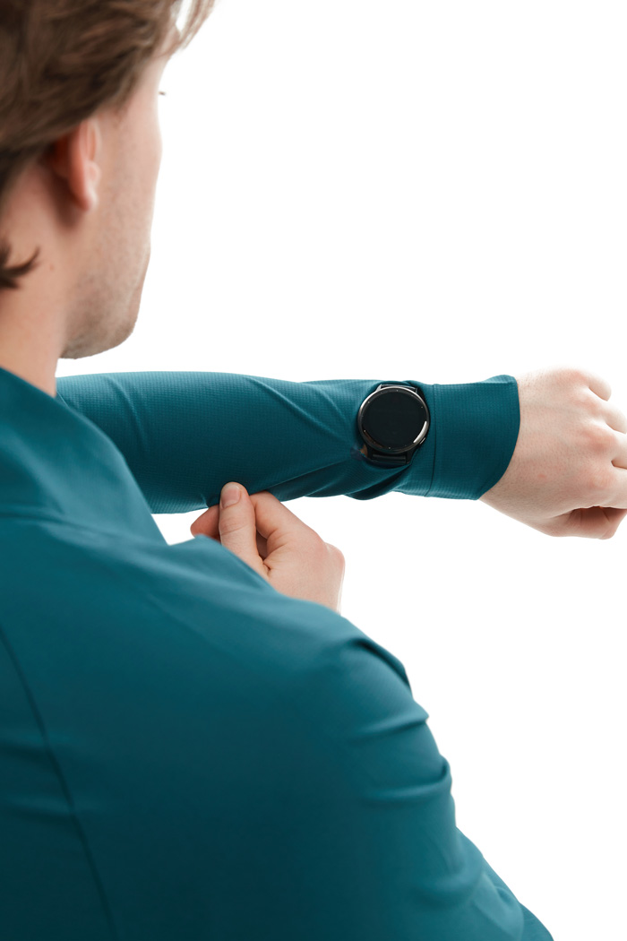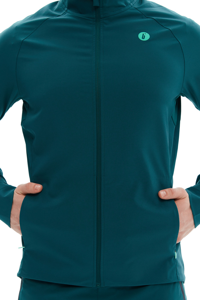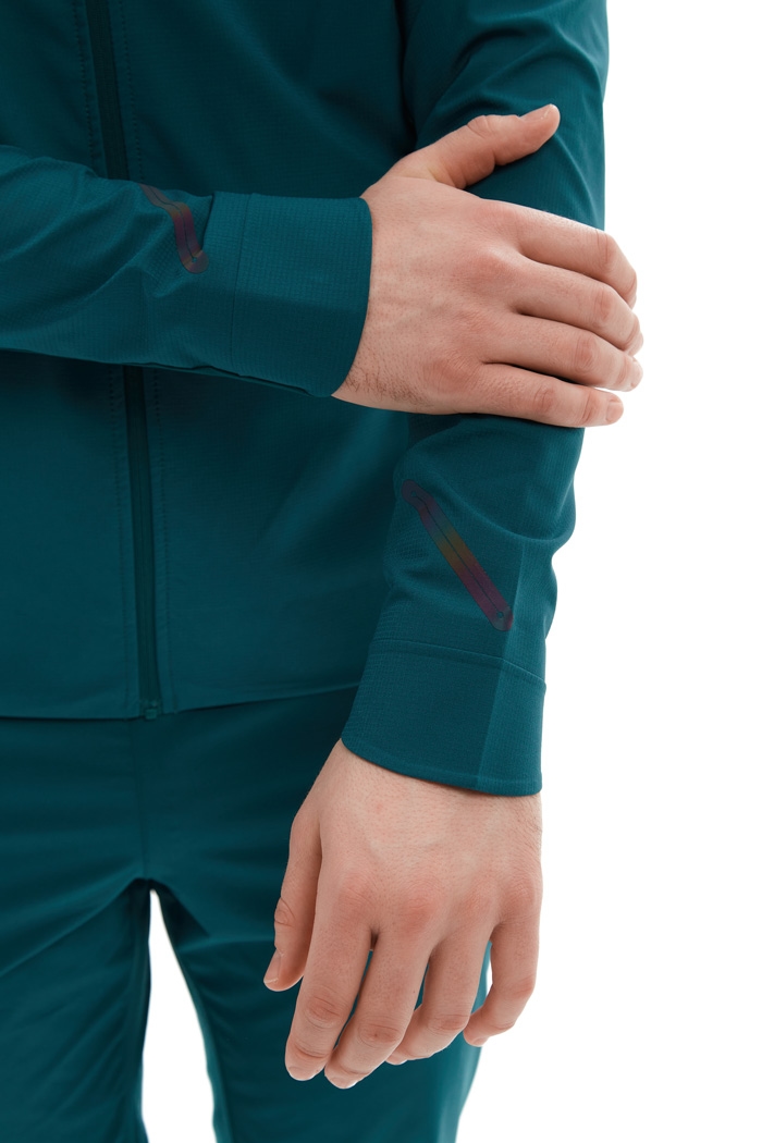 Воротник-стойка и проклеенный низ усиливают защиту, предотвращая проникновение холодного воздуха и капель под одежду. Дополнительная утяжка внизу модели позволяет точно зафиксировать посадку, исключая задирание куртки во время бега. Сетчатые вставки в области подмышек выводят лишнее тепло — это особенно важно при высоком темпе или переменной интенсивности тренировки. Удобные боковые карманы на скрытой молнии вмещают необходимые мелочи: ключи, телефон или энергетические гели. Разрезы для часов на рукавах позволяют следить за показателями во время тренировки, не обнажая запястье. Светоотражающие элементы повышают видимость в темноте.