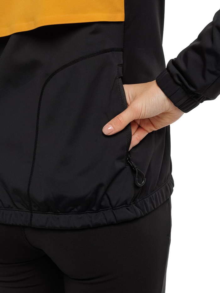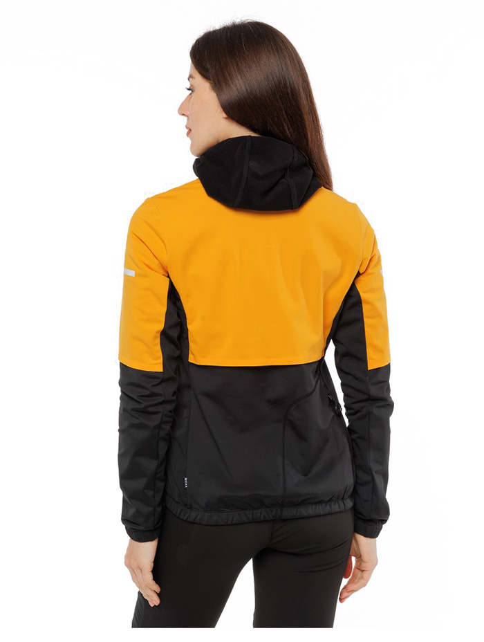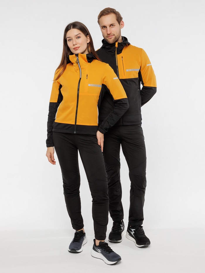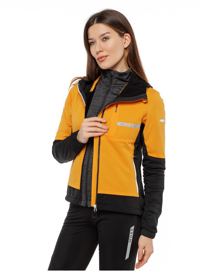 Основа куртки выполнена из материала с мембраной, которая устойчива к ветру и легким осадкам. Эластичные дышащие вставки обеспечивают оптимальную циркуляцию воздуха, предотвращая перегрев при высокой активности. Капюшон, манжеты и подол куртки выполнены из эластичного материала, который предотвращает задувание ветра и обеспечивает надежную посадку. В боковых карманах на молниях удобно хранить перчатки, кроме этого, предусмотрен нагрудный карман на молнии для хранения ключей и карточек, а также вместительный карман на спине.