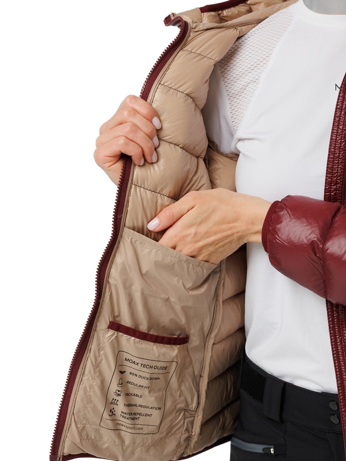 Высококачественный пух обеспечивает эффективное сохранение тепла и минимальный вес куртки. Внешняя ткань блокирует ветер и имеет водоотталкивающую обработку, обеспечивая защиту от небольшого дождя или снега. Благодаря компактной конструкции куртка легко складывается в собственный карман, что делает ее удобной для транспортировки и хранения.