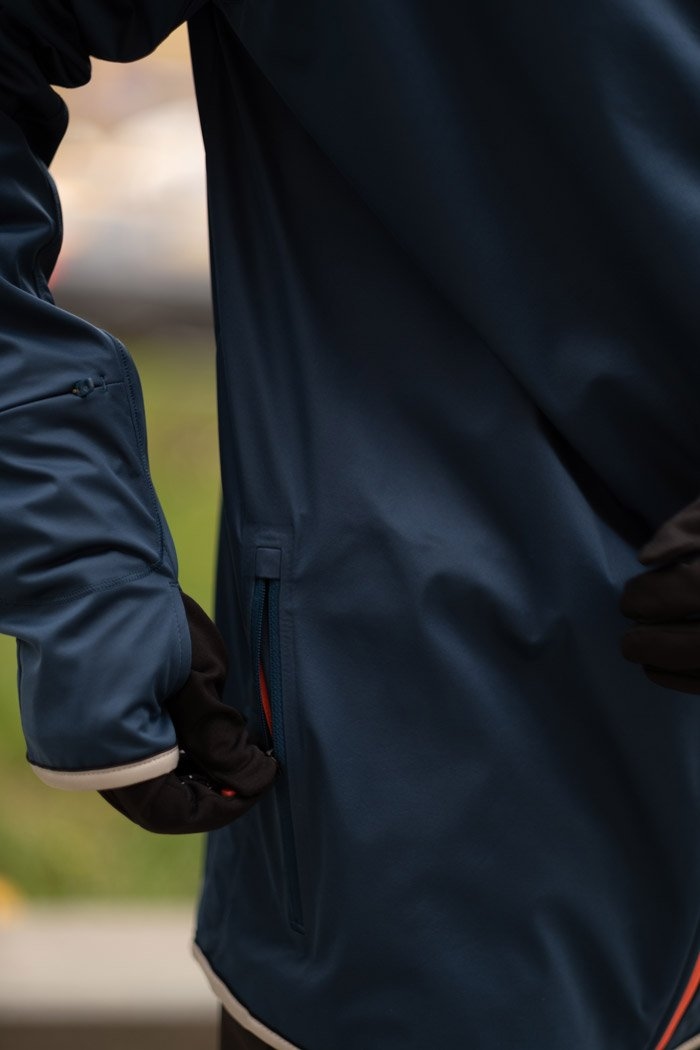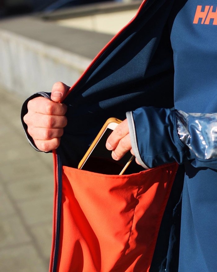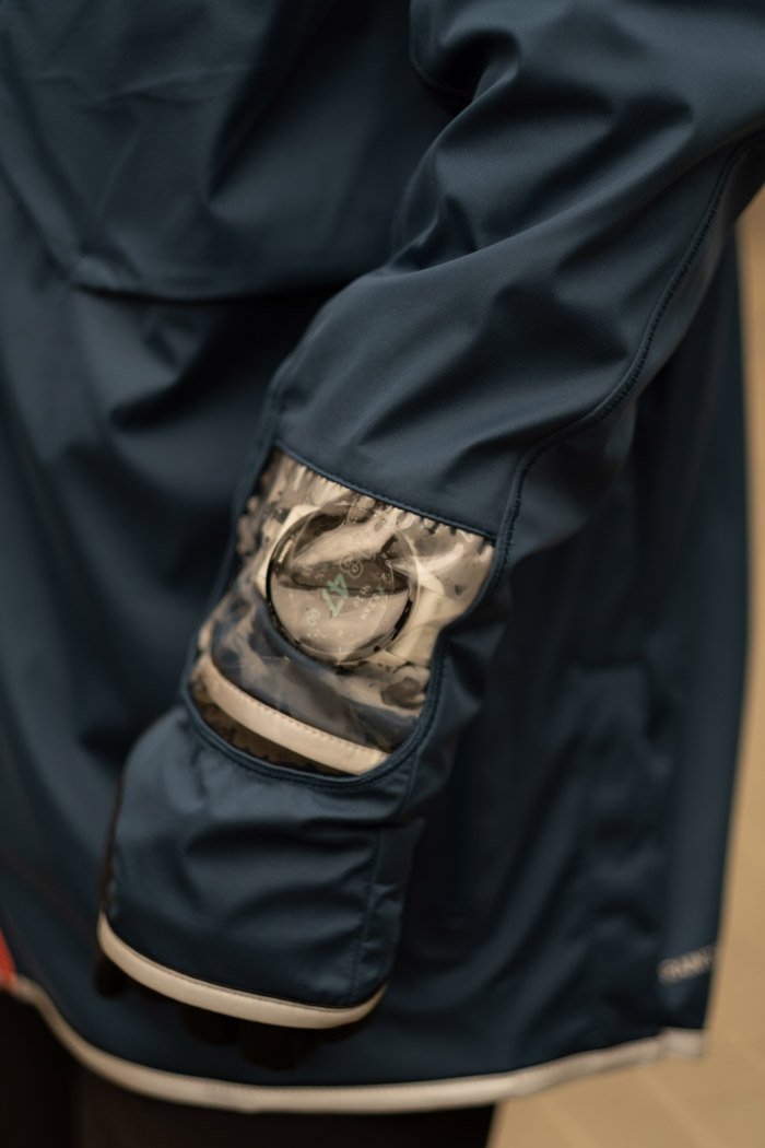 На рукаве предусмотрено прозрачное окошко для часов, а по бокам расположены вместительные карманы на молнии для хранения важных мелочей.