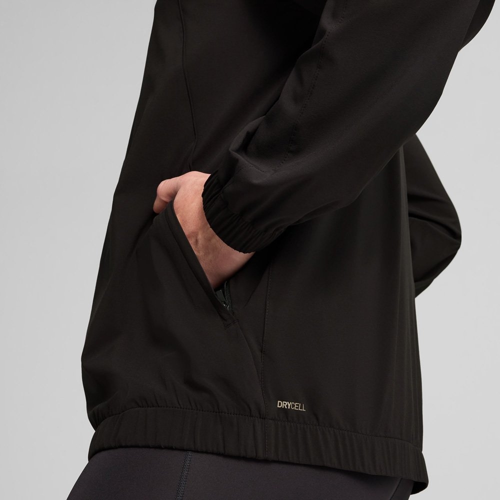 Благодаря технологии dryCELL материал эффективно отводит влагу от тела, помогая сохранять сухость и комфорт даже на интенсивных тренировках. Легкая ткань с добавлением эластана обеспечивает свободу движений и приятное ощущение. Планка на молнии защищает подбородок от натирания. Куртка оснащена карманами, где удобно хранить ключи, телефон или другие мелочи во время бега.