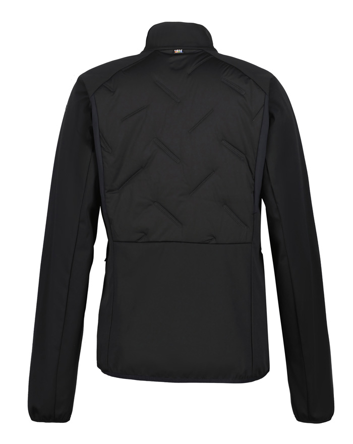 Передняя и задняя части утеплены легкой синтетической изоляцией, которая эффективно сохраняет тепло. Для оптимального температурного режима и вентиляции в критических зонах использованы дышащие и эластичные вставки, что делает куртку комфортной при интенсивных нагрузках.