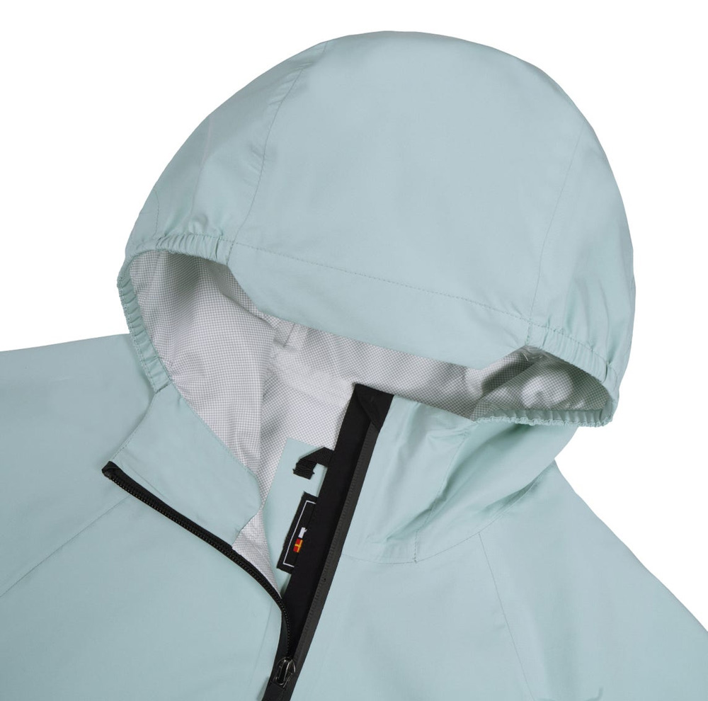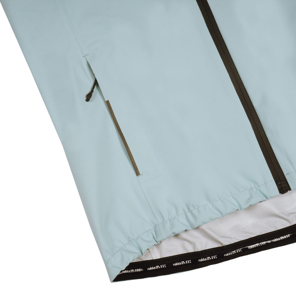 Куртка изготовлена из 2,5-слойной ткани, в которой внешний слой соединен с водонепроницаемой и воздухопроницаемой мембраной. Мембрана покрыта рельефным рисунком, защищающим ее от истирания и продлевающим срок службы изделия. Все швы модели проклеены лентой, что гарантирует идеальную водонепроницаемость и исключает проникновение влаги даже при длительном нахождении под дождем. Поверхность ткани дополнительно обработана водоотталкивающим покрытием, усиливающим защитные свойства куртки.