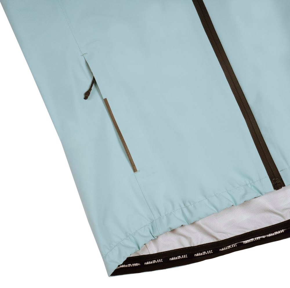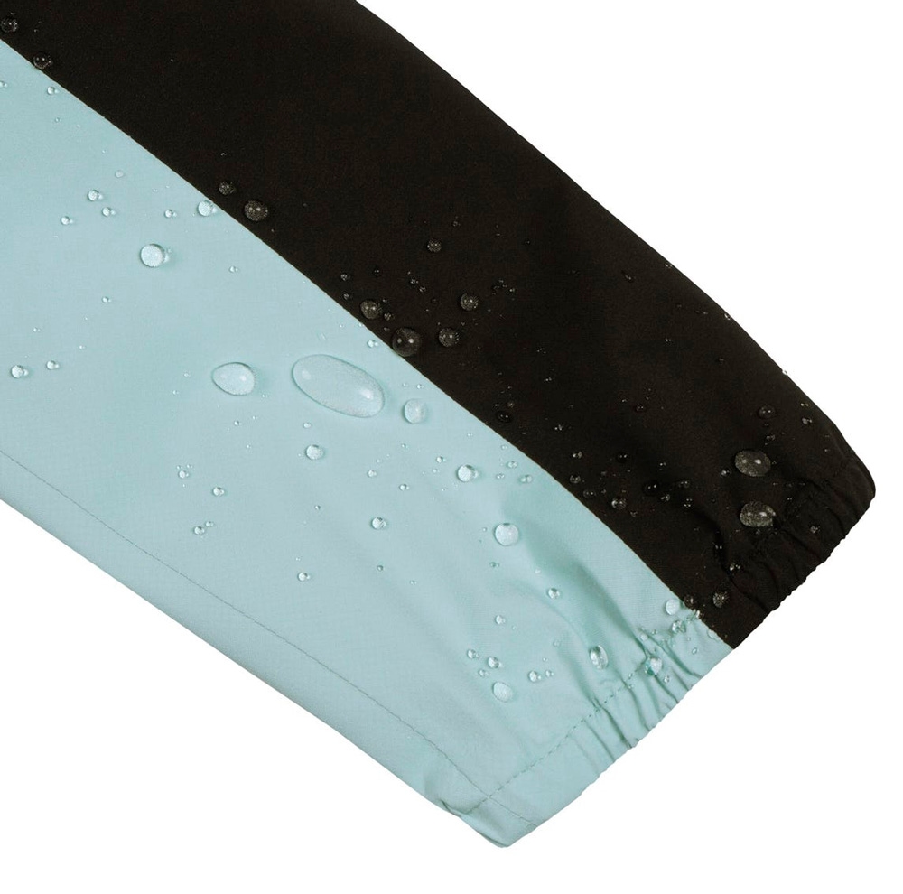 Куртка изготовлена из 2,5-слойной ткани, в которой внешний слой соединен с водонепроницаемой и воздухопроницаемой мембраной. Мембрана покрыта рельефным рисунком, защищающим ее от истирания и продлевающим срок службы изделия. Все швы модели проклеены лентой, что гарантирует идеальную водонепроницаемость и исключает проникновение влаги даже при длительном нахождении под дождем. Поверхность ткани дополнительно обработана водоотталкивающим покрытием, усиливающим защитные свойства куртки.