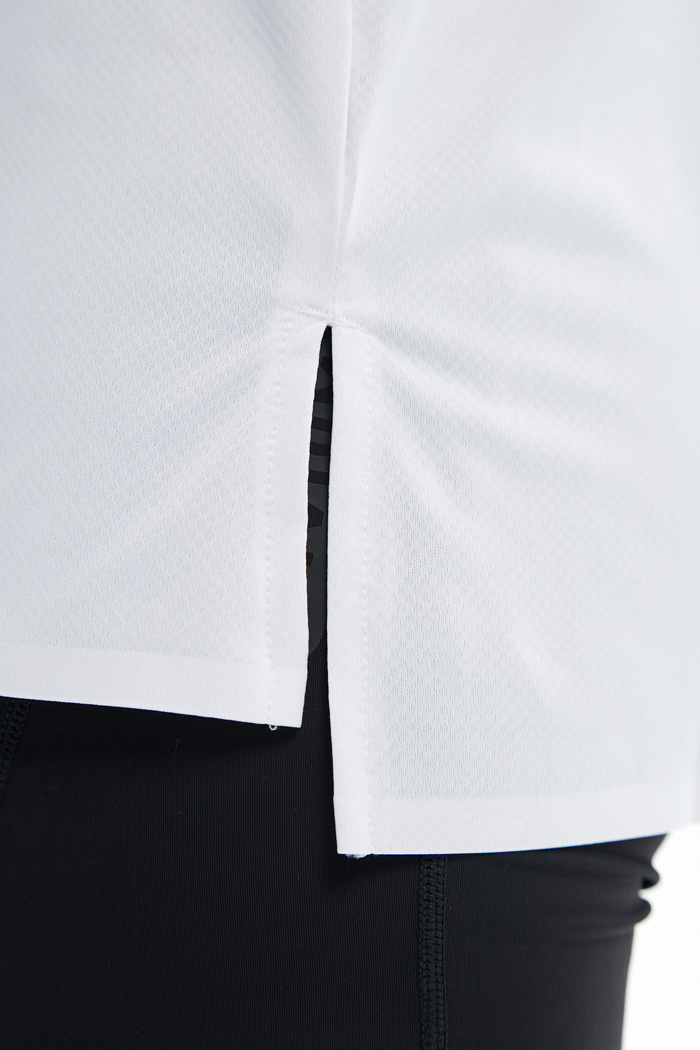 Изделие сшито из легкого дышащего полиэстера, который эффективно отводит влагу от тела, сохраняя сухость и свежесть. Перфорация на спине и сетчатые эластичные вставки по бокам усиливают циркуляцию воздуха, работая как естественная система вентиляции. Боковые разрезы добавляют дополнительную свободу движений.