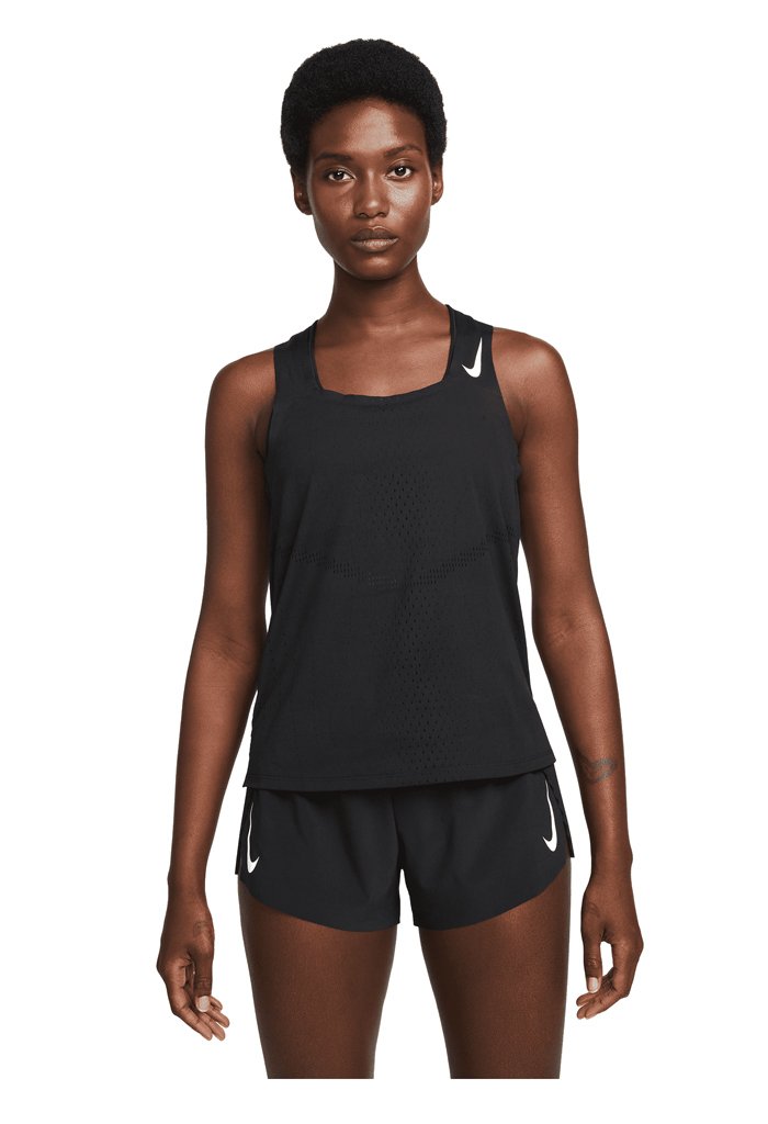 Ткань с технологиями Dri-FIT и AeroSwift моментально выводит влагу, отлично вентилируется и обеспечивает комфортную посадку. Перфорация по всей длине майки для дополнительной вентиляции.