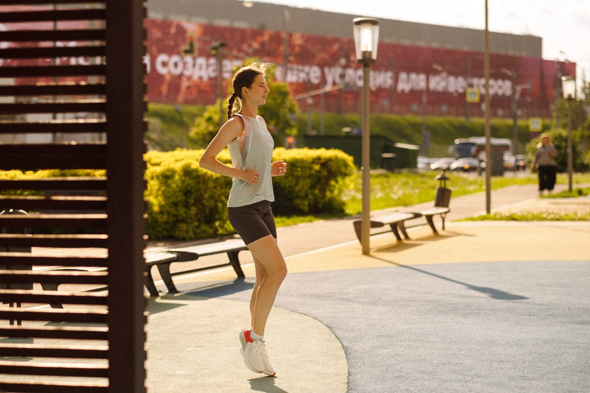 Женская майка эргономичного кроя для беговых тренировок в жаркую погоду. Эластичная ткань обеспечивает свободу движений и идеальную посадку, не сковывая движений.