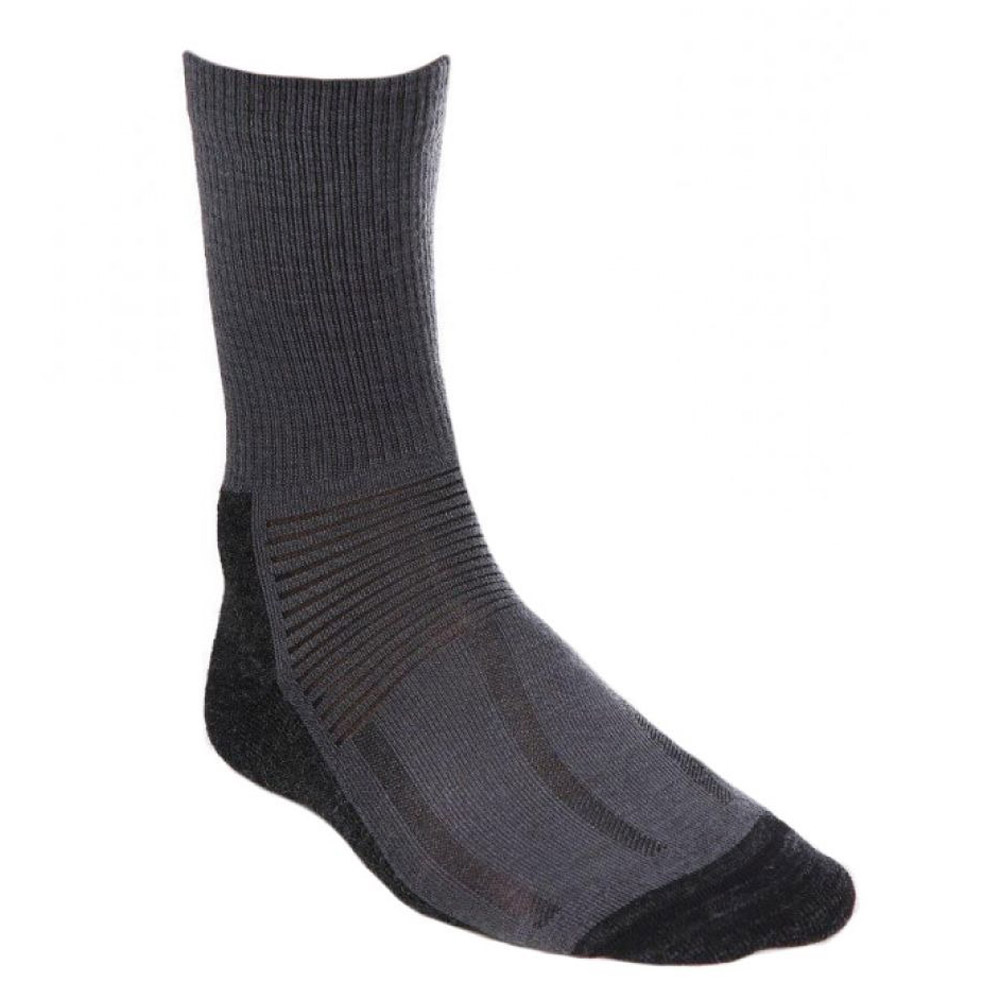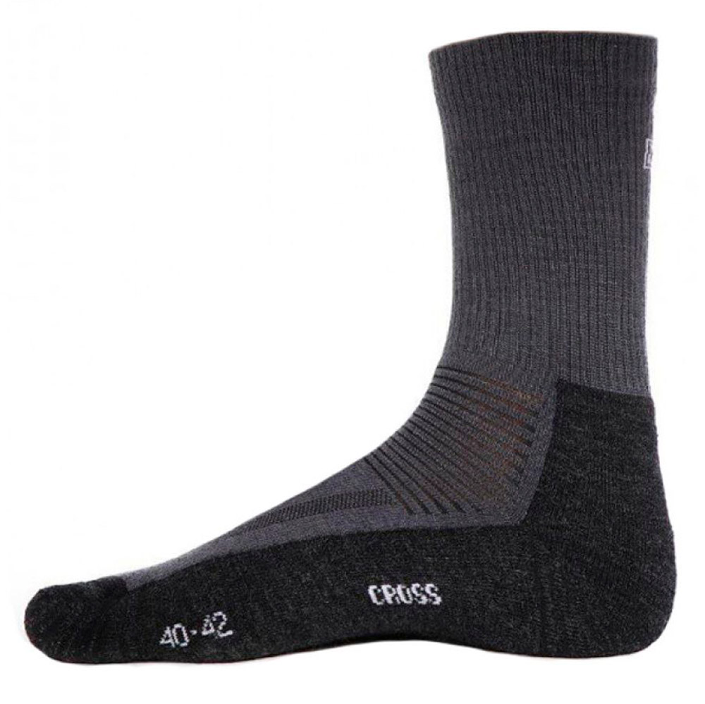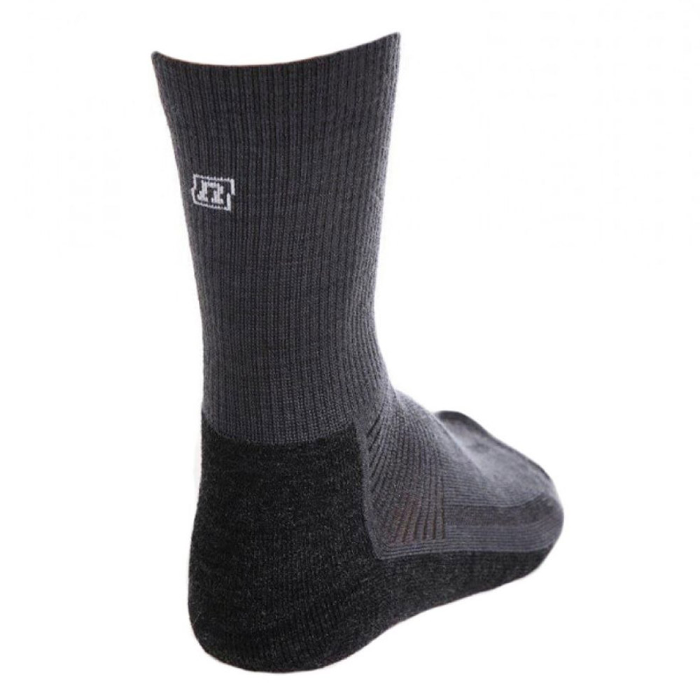 Благодаря добавлению шерсти мериноса обеспечивается естественная терморегуляция - ноги остаются в тепле в холодную погоду, а во время интенсивных нагрузок предотвращается перегрев. Эластичная конструкция плотно облегает стопу, поэтому носки не скользят на ноге. Усиленные зоны на пятке и носке смягчают удары, продлевая срок службы носков.
