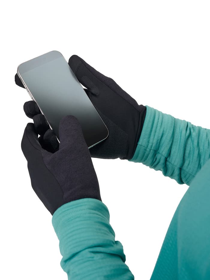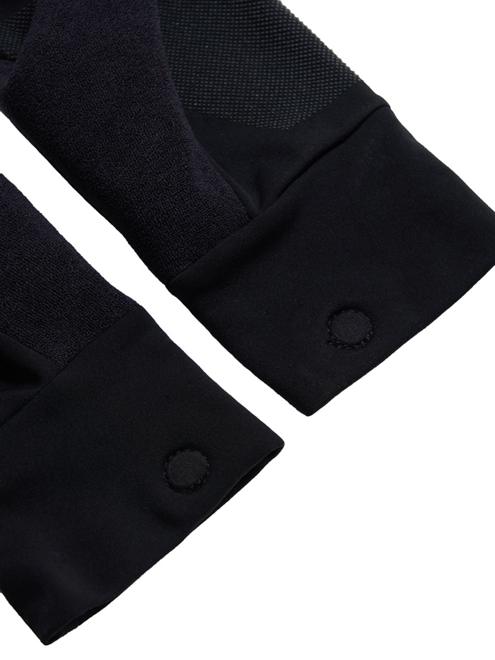 Сенсорные накладки на пальцах позволяют пользоваться смартфоном, а силиконовые вставки предотвращают скольжение гаджета в руке. Удобные манжеты фиксируют посадку, на больших пальцах расположены впитывающие вставки, а магнитные крепления дают возможность хранить перчатки вместе. Предусмотрены светоотражающие элементы, повышающие безопасность тренировок в темное время суток.