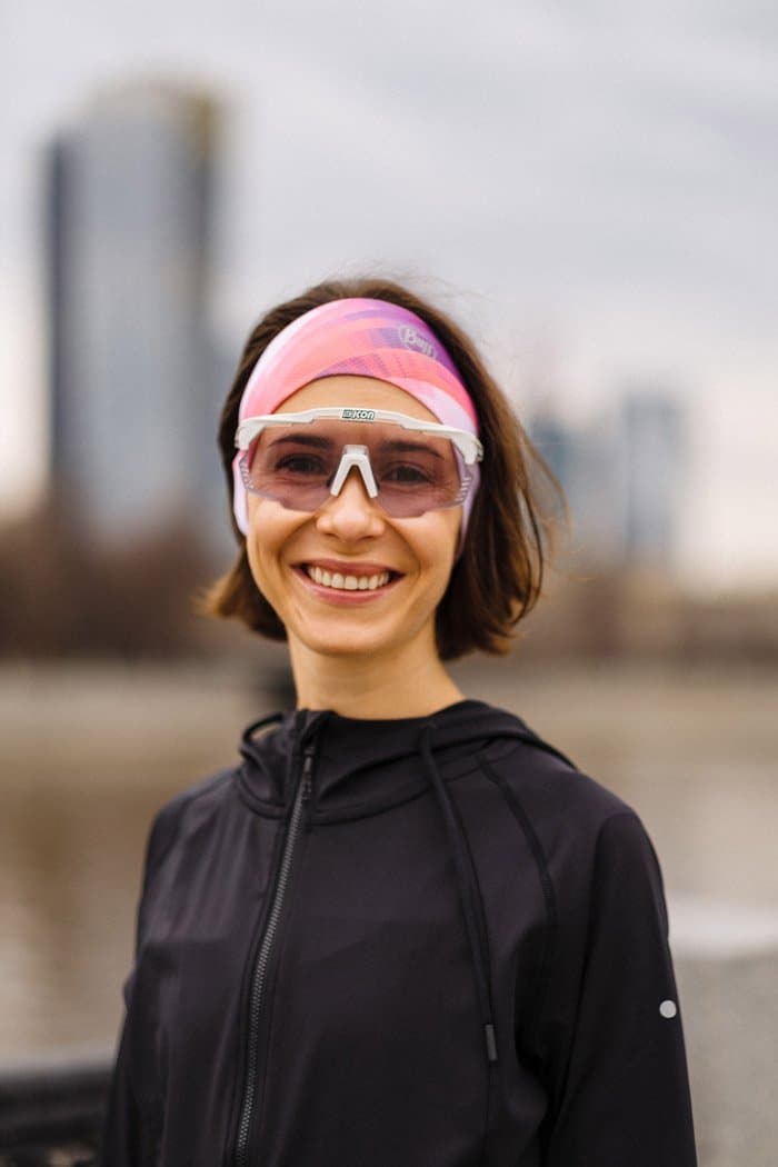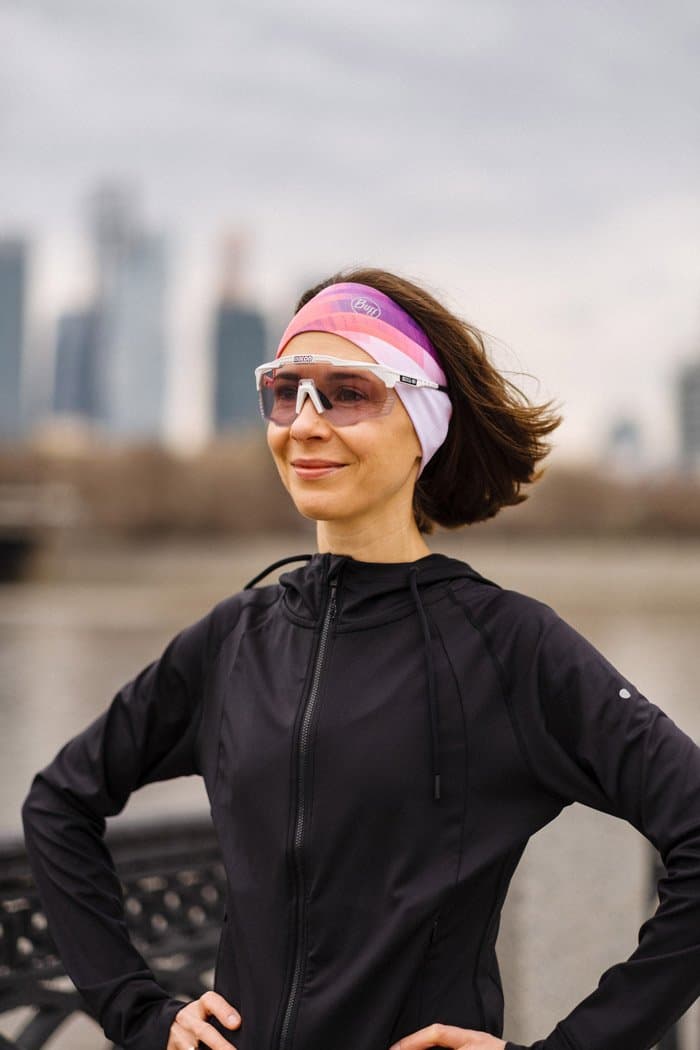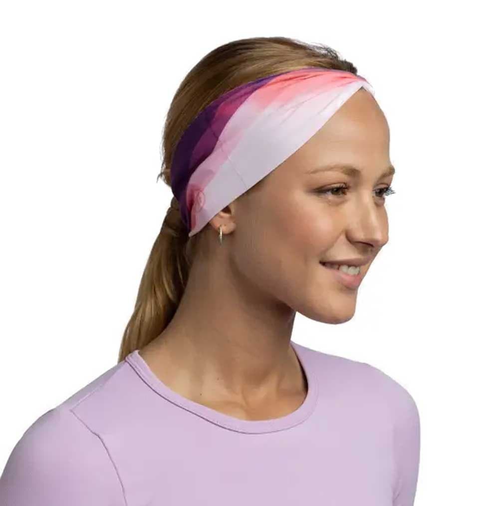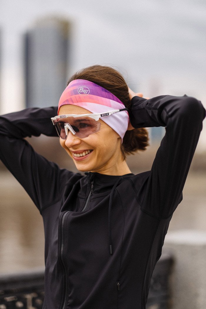 Повязку CoolNet UV+ Ellipse можно носить двумя способами: узлом назад, как обычную повязку, или узлом вперед, как чалму. Аксессуар помогает фиксировать волосы и защищает лицо от пота.