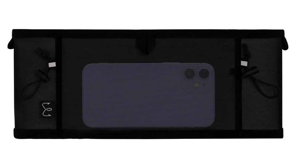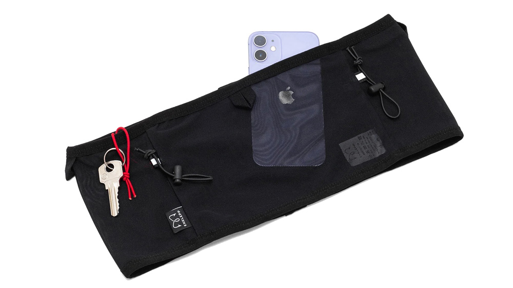Удобный пояс с карманами для бега по пересеченной местности. Передний карман предназначен для хранения телефона. По окружности располагаются открытые карманы разного размера для удобного размещения необходимых мелочей. Спереди предусмотрены две съемные петли для крепления номера, а в боковых карманах - петли для ключей. Сзади располагаются две широкие резинки с противоскользящим плетением, предназначенные для хранения треккинговых палок или беговых аксессуаров.