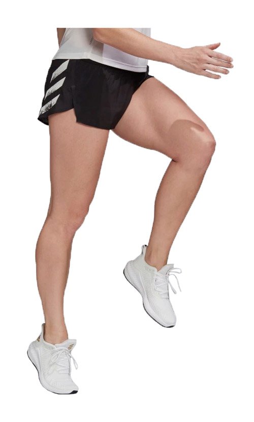 Женские шорты-сплиты для интенсивных тренировок и соревнований. Модель предусматривает двойную конструкцию. Внешние шорты с разрезами по бокам для свободы движений, сшиты из переработанного полиэстера. Внутренние шорты отводят влагу и быстро сохнут.