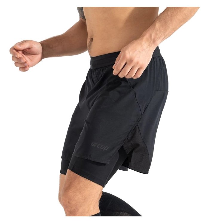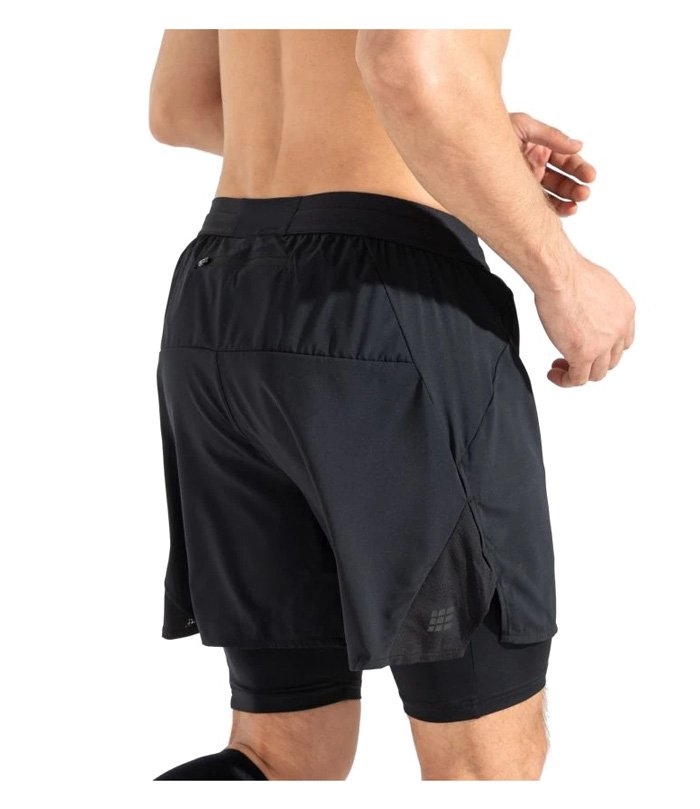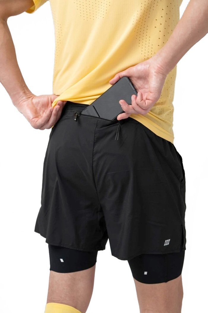 Мужские шорты для бега и тренинга 2 в 1. Внутренние эластичные шорты повторяют движения вашего тела и обладают дышащими и быстросохнущими свойствами. Верхние шорты свободного кроя обеспечивают свободу движений. Плоский пояс продублирован шнурком для плотной посадки. В заднем кармане можно хранить необходимые на пробежке мелочи. Светоотражающие элементы повышают видимость, когда на улице темно.