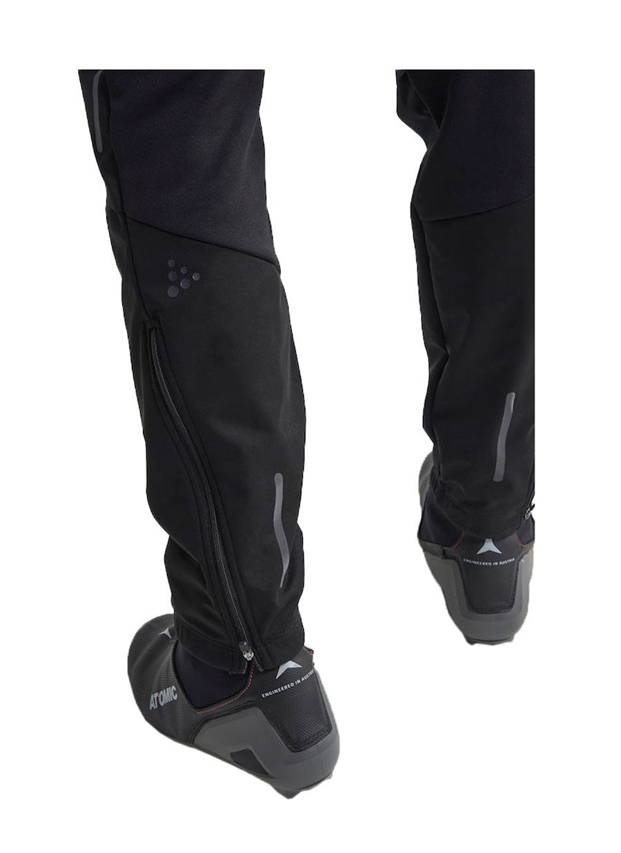 Мужские штаны для тренировок на беговых лыжах и бега в зимний период. Впереди на бедрах панель из ветрозащитной ткани, задняя часть штанов изготовлена из эластичного дышащего трикотажа с начесом с внутренней стороны.