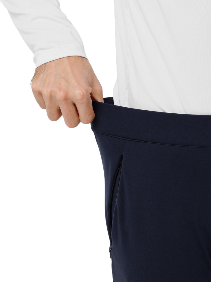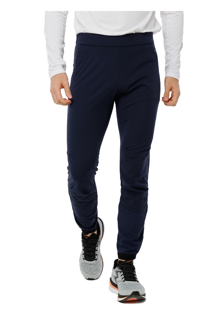 Модель не стесняет движений и обеспечивает удобную посадку. Для практичности предусмотрены два боковых кармана на молнии и сетчатый карман сзади. Эластичная резинка снизу брюк обеспечивает плотное прилегание к обуви.